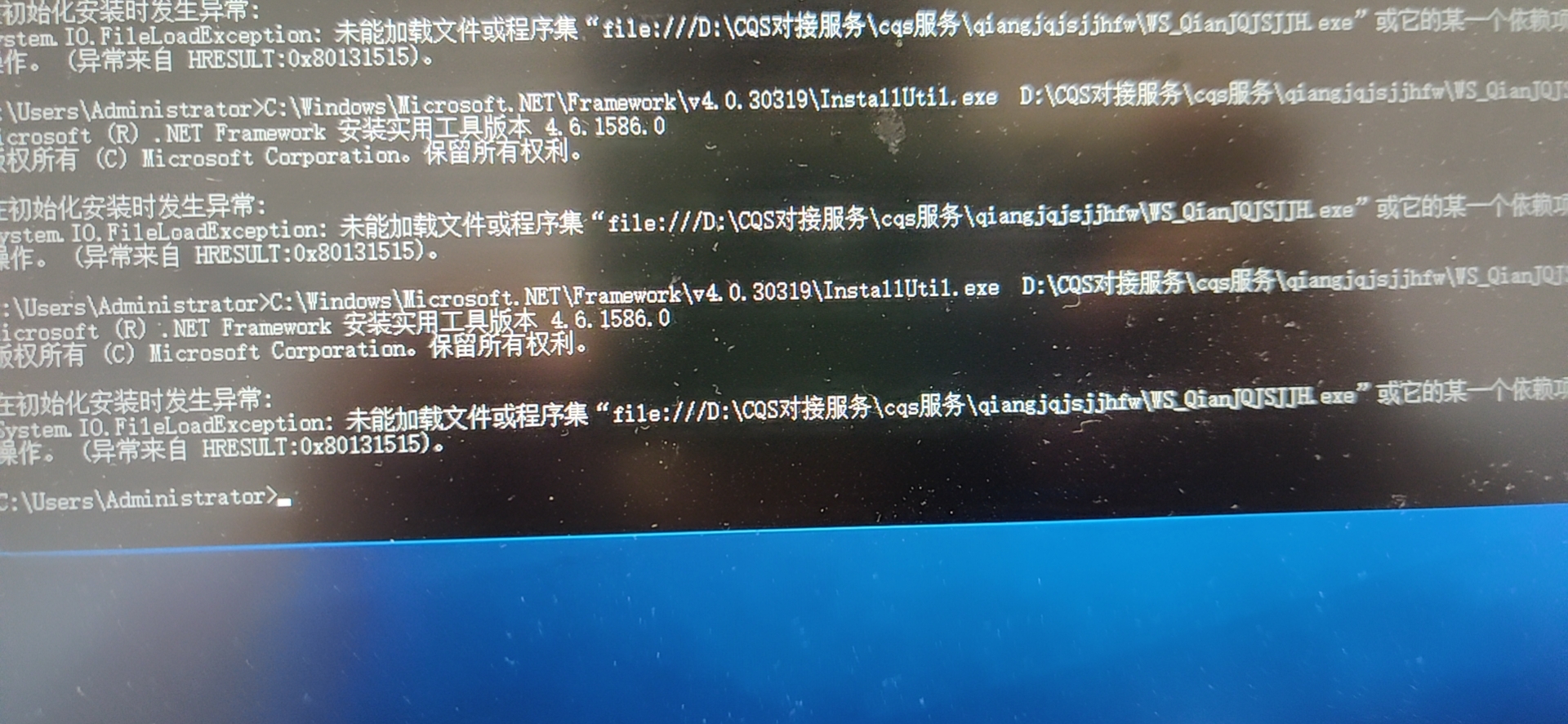 如果系統手動安裝CQS服務出現錯誤如圖