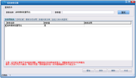 解決辦法:在【系統設置中心】中的【系統設置參數設置】中的【啟用模板批量導出】