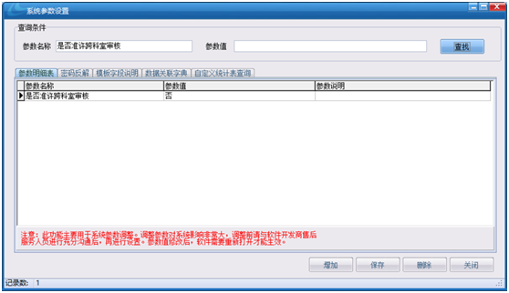 解決辦法:在【系統設置中心】中的【系統設置參數設置】中的【是否準許跨科室審核】