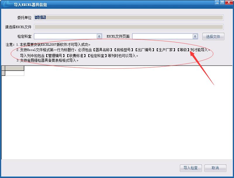可以參照2014河南省計量處提供的強制檢定器具備案表格式,讓企業(yè)填寫后,系統(tǒng)可以直接導(dǎo)入(格式不能變化,按原表格進行登記)