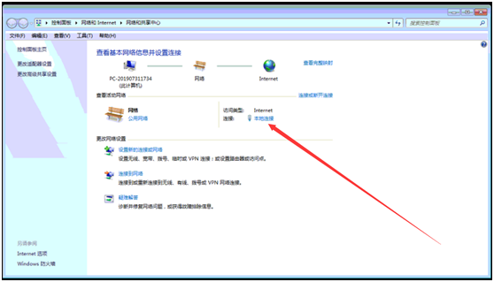 打開網(wǎng)絡共享中心,選擇本地連接
