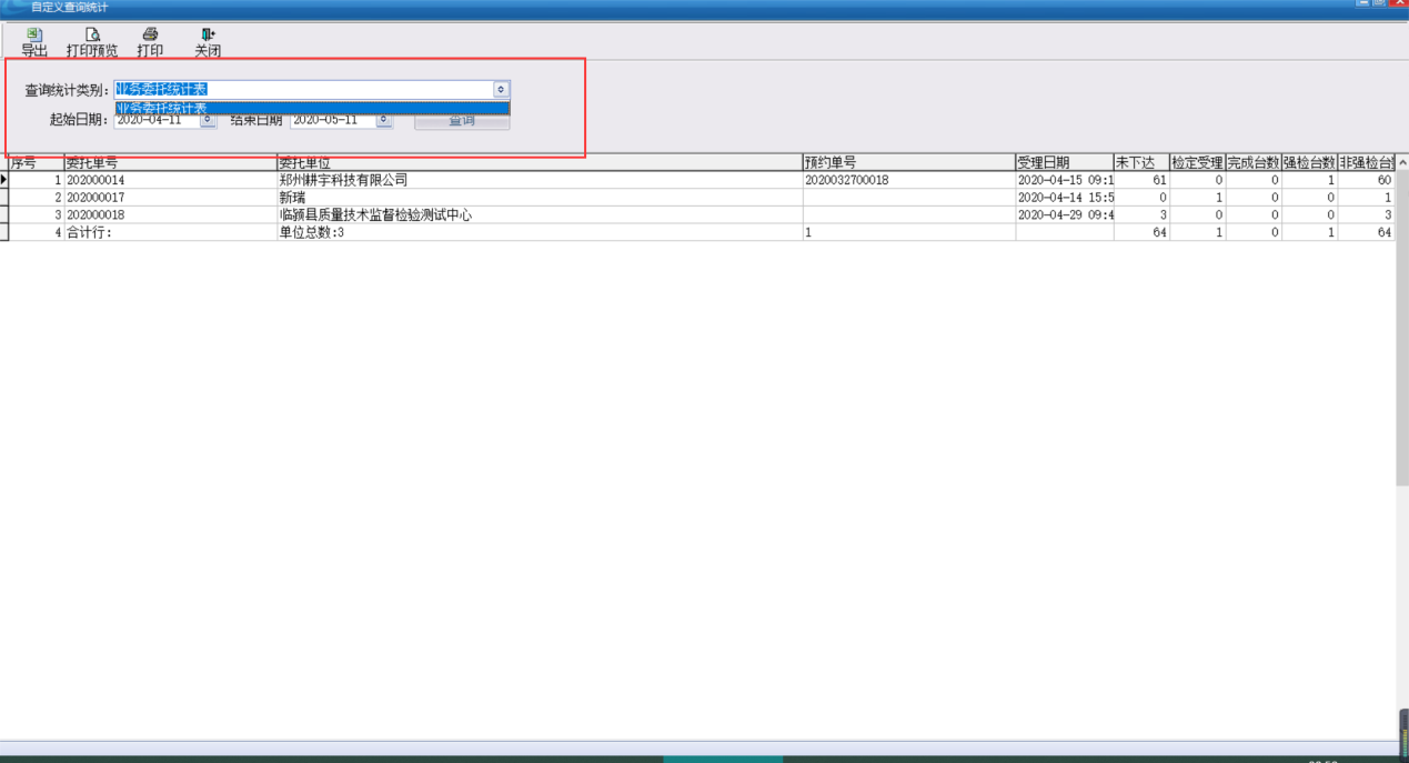 4.然后就可以在【綜合統計分析】→【自定義統計表查詢】里邊選擇需要查詢的報表,選擇時間,然后進行查詢,可導出為Excel。