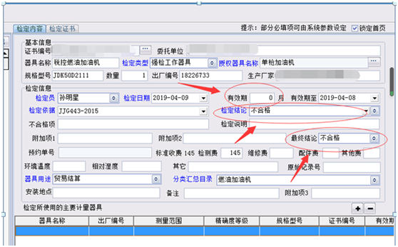 注:有效期可以填寫成0(檢定結(jié)果通知書不存在有效期)
