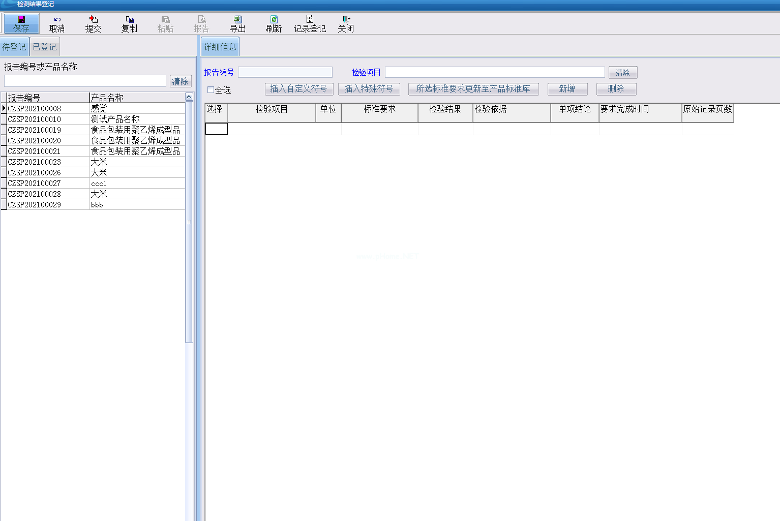 注意:【檢驗工作管理】| 【檢驗結果登記(按報告)】 最后一次打開后 主頁面的檢測數據登記就最后一次為主