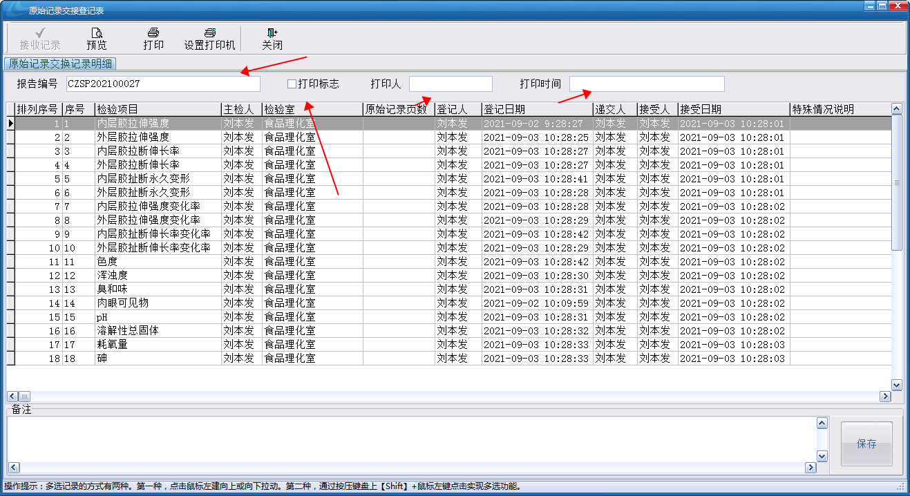 記錄交接記錄增加打印標志、打印人、打印日期的顯示與保存。
