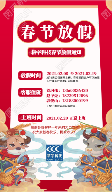 關于2021鄭州耕宇公司放假安排通知